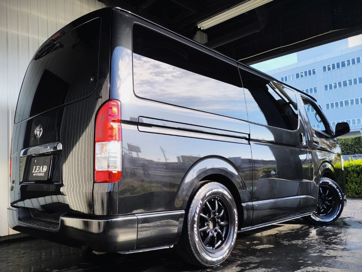 バンからワゴンに変更(10乗り公認済み)/PIVOT スロコン/社外 フロントリップ/ALPINEフリップダウンモニター/ALPINE ナビ/デジタルインナーミラー/シートカバー/社外 ホイール 16インチなど