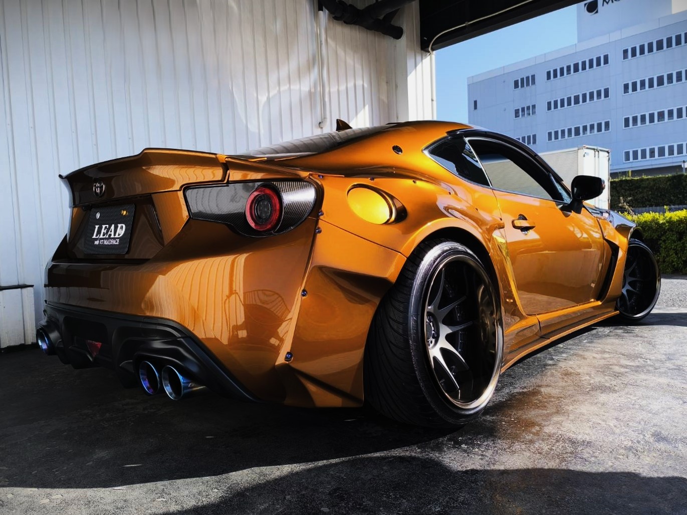 TRUST コンフォートスポーツGTS ver3 マフラー/SKID RACING トレーリングロッド/SKID RACING トーコントロールアーム/SKID RACING 鬼キャンロアアーム/airforce スーパーパフォーマンスキット/TRD ドアスタビライザー/C-WEST フロントバンパー/C-WEST サイドステップ/rallybacker フロントフェンダー/rallybacker リアフェンダー/MODELLISTA ウイング/rallybacker Ver2 ワイドボディキット/INTEC ヘッドライト/INTEC テールランプ/CUSCO アクセルペダル/AUTO-VOX ミラー型ドライブレコーダー/WORK EMOTION CR3P 18インチなど