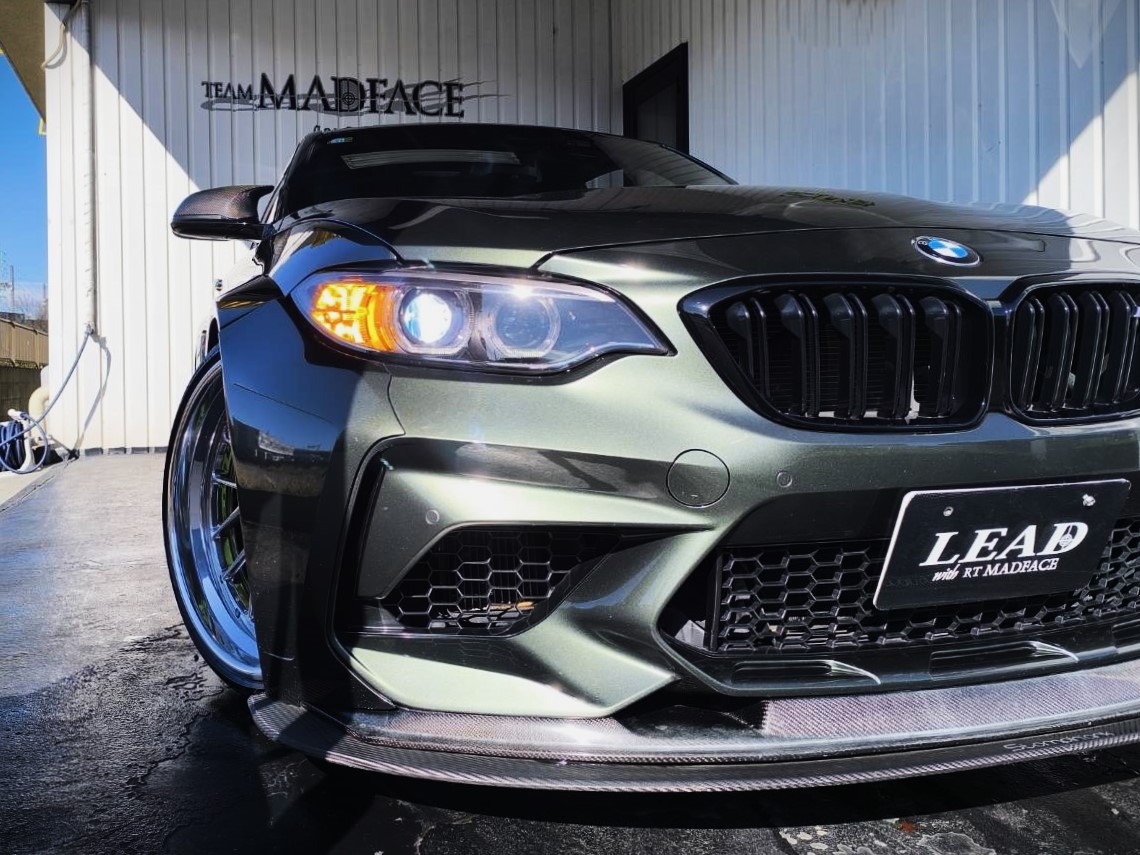 | カスタム | ●チューニング&ドレスアップ● WAGHER TUNING インタークーラー/Supersprint マフラー/Jfactory CPU/Supersprint センターパイプ/ACCUAIR Levelマネジメント エアサス/Brembo キャリパー/社外 タワーバー/F87型 M2フロントバンパー加工/MAHHART ワイドボディキット/MTC Design カーボンリップ/STOMPIN ARK カーボンリップ/3DDesign ディフューザー/ヘッドライトスモークフィルム/後期 テールランプ/STACK 水温・油温・ブースト計/m-sports ステアリング/m-sports スカッフプレート/RECARO シート/1221 R5335 AP3 20インチなど |